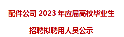 根據配件公司2023校園招聘實(shí)施方案和有關(guān)制度要求,確定鮑萌萌等14人(名單附后,以姓名首拼為序) 為我公司擬聘人選,現面向社會(huì )進(jìn)行公示。公示期五天,自2023年5月29日至2023年6月2日止。 監督電話(huà): 0551-63689007 來(lái)信地址:合肥市蜀山區......