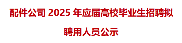 根據配件公司2025校園招聘實(shí)施方案和有關(guān)制度要求,確定黃冰虹等8人(名單附后,以姓名首拼為序) 為我公司擬聘人選,現面向社會(huì )進(jìn)行公示。公示期五天,自2025年5月26日至2025年5月30日止。 監督電話(huà): 0551-63689007 來(lái)信地址:合肥市蜀山區臥云路30......